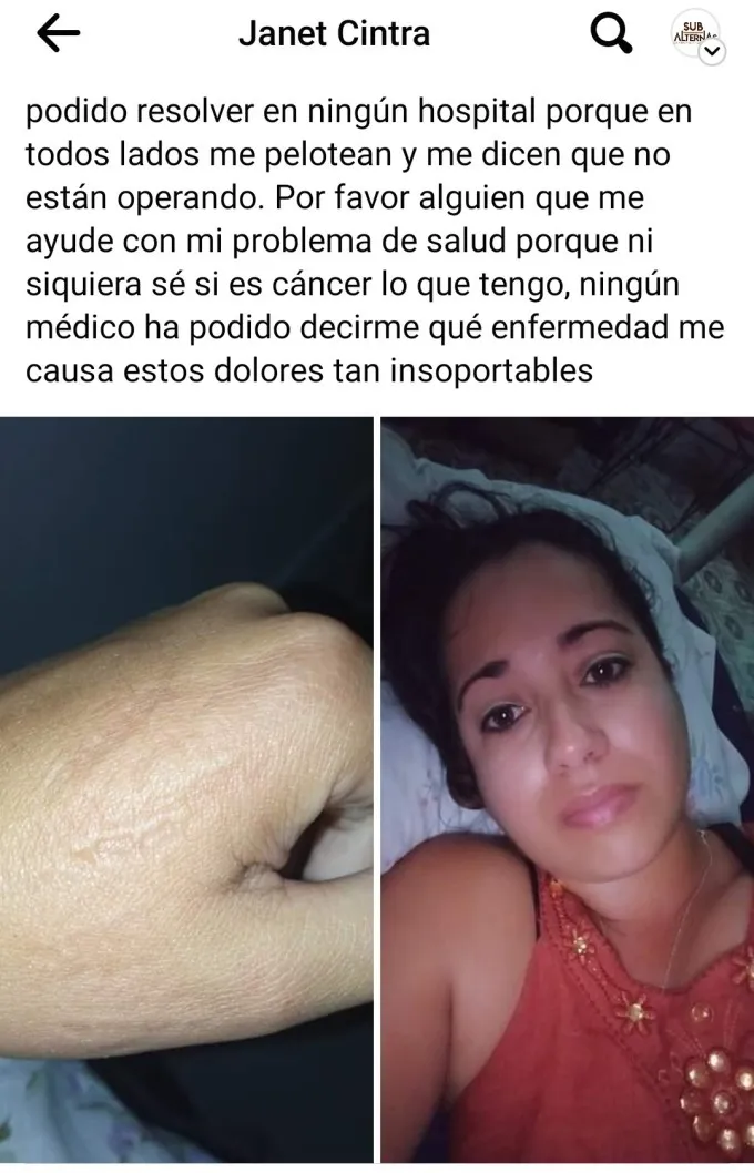 En días pasados una usuaria de Facebook identificada como Yanet Cintra pidió ayuda a través de esa red social para su crítica situación de salud.